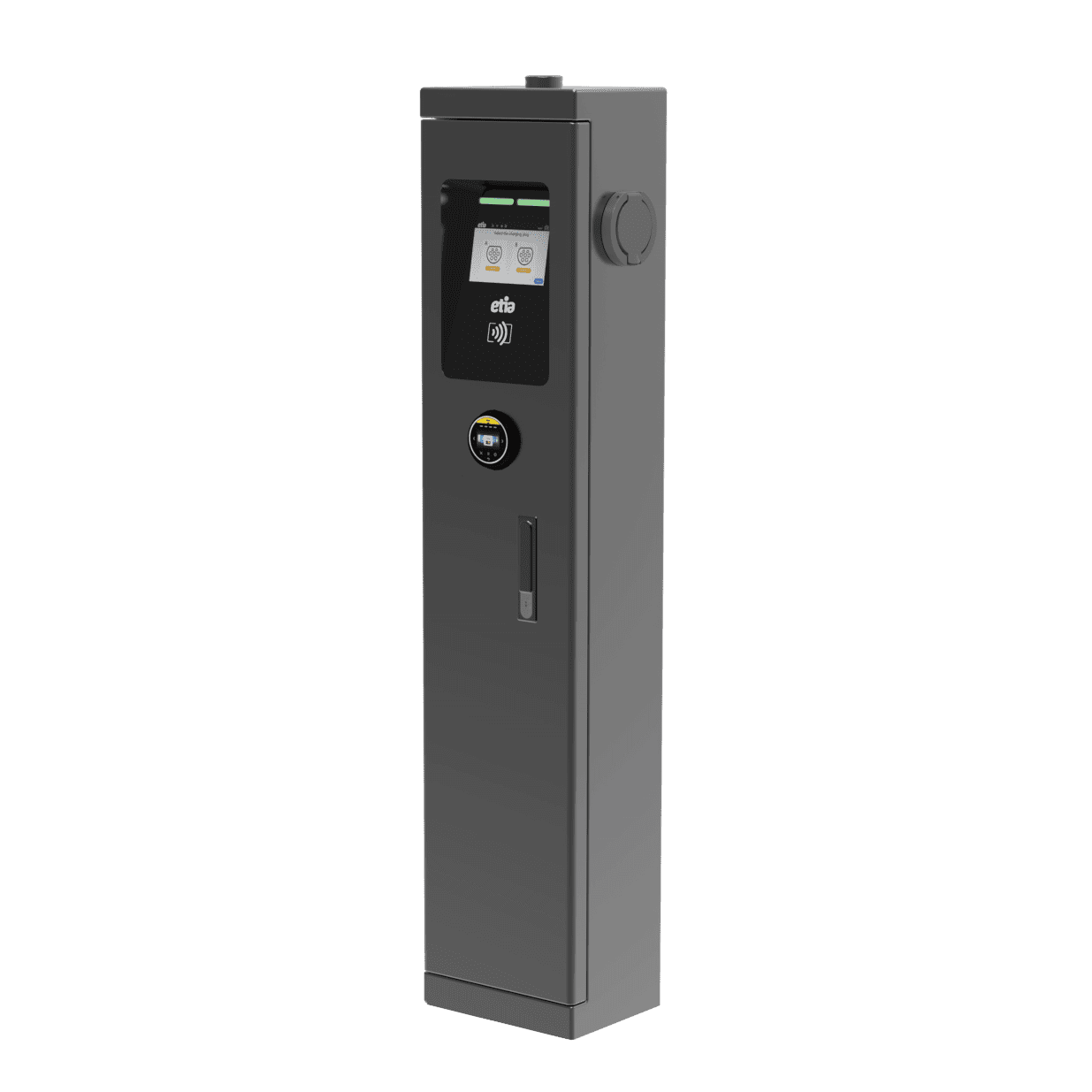 El cargador auto electrico Etia NGAGE 44kWh es la solución ideal para quienes buscan cargar de manera rápida y a su vez poseer una gran rotación de vehículos. Con dos conectores de salida tipo 2 Socket y con 22kWh de potencia en cada boca de forma independiente